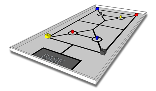 Der Roboter hat die Aufgabe die hohlen Würfel (im Weiteren nur: Würfel) einzusammeln und über die Säulen der entsprechenden Farben zu stecken. Insgesamt gibt es vier hohle Würfel und Säulen in den Farben rot, blau, schwarz und gelb (siehe Spielplan).